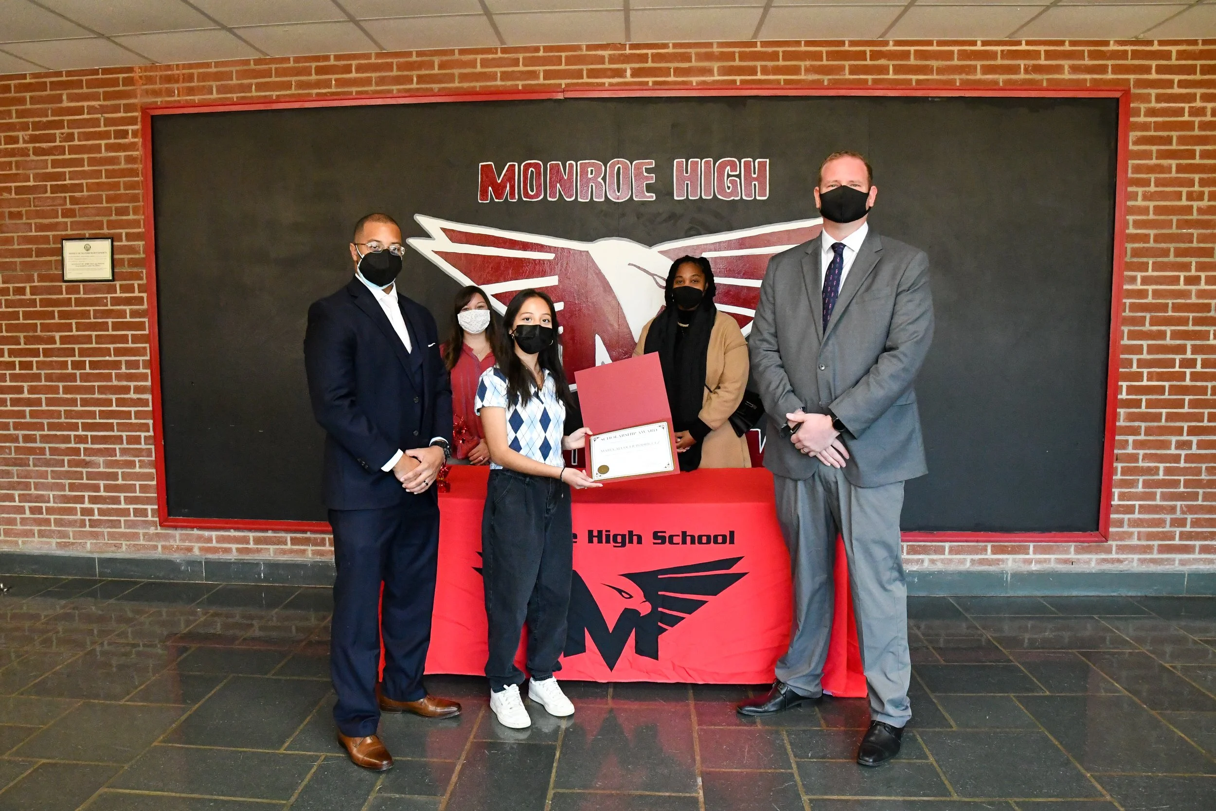 State of Success, Inc. presents the “Rising Redhawk Award” to Ashley Rivera Cuamacateco. The “Rising Redhawk Award” is a part of the Student of Success Scholarship and is awarded to an Monroe High School senior each year. Congratulations Ashley!